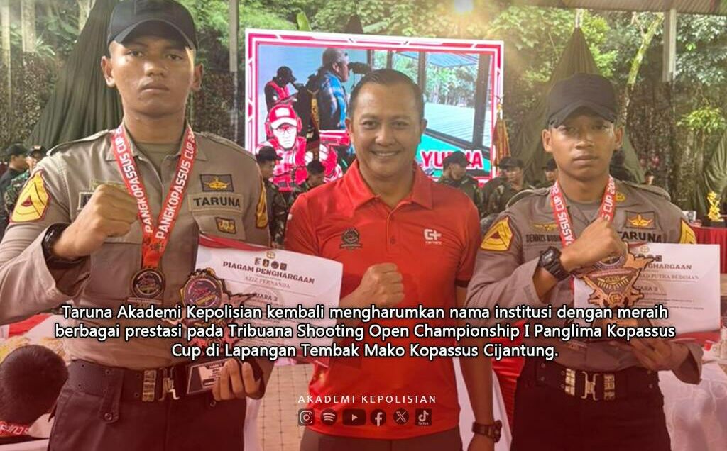 Jakarta – Taruna Akademi Kepolisian kembali menorehkan prestasi membanggakan di tingkat nasional pada ajang Tribuana Shooting Open Championship I Panglima Kopassus Cup, yang digelar di Lapangan Tembak Markas Komando Kopassus Cijantung.